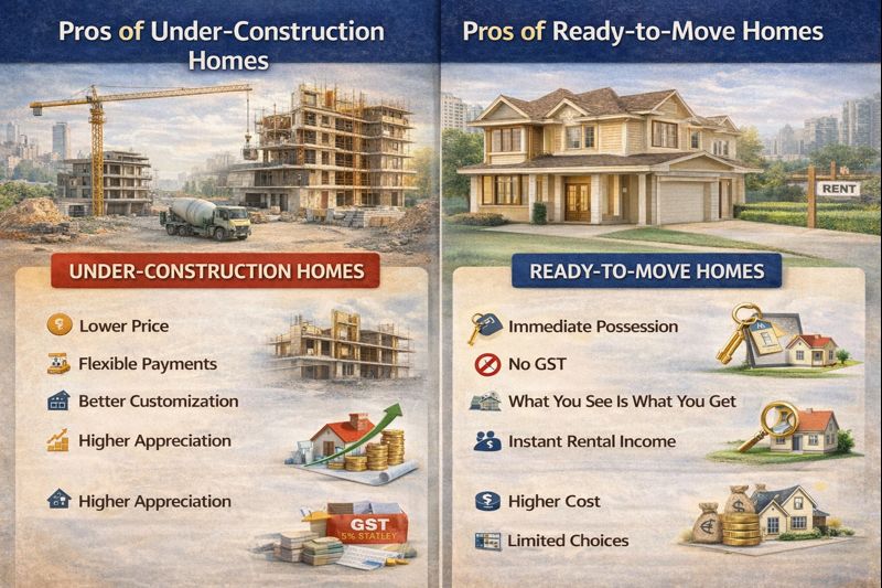 In this blog, we clearly explain the pros and cons of under-construction vs ready-to-move homes, so you can make an informed and confident decision.